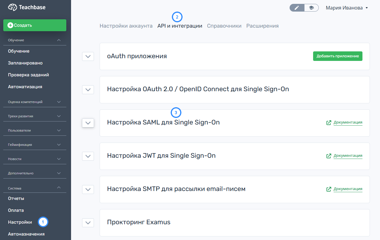 Настройка на стороне Teachbase