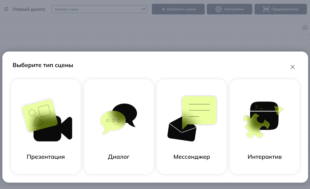 При создании интерактивного тренажера вы можете свободно комбинировать разные типы сцен. Нет никаких ограничений ни по количеству, ни по видам используемых сцен. Главное — сохранять целостность сюжета и учитывать образовательные цели.